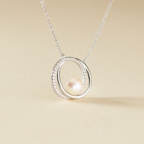 Collier Laury Argent Blanc Perle De Culture Et Oxyde De Zirconium - 45 cm