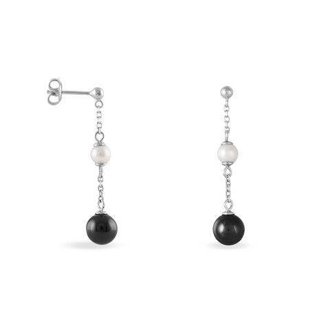 Boucles D'oreilles Pendantes Nerea Argent Blanc Céramique Et Oxyde - Boucles d'oreilles pendantes Femme | Histoire d’Or