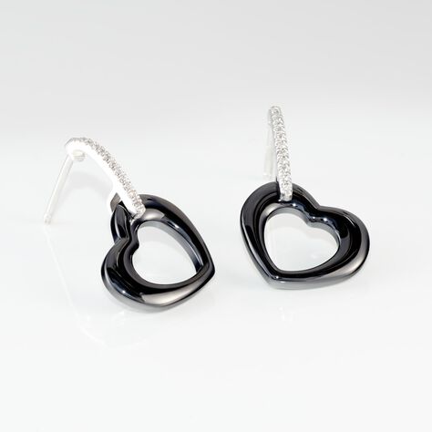 Boucles D'oreilles Pendantes Celinia Argent Blanc Céramique Et Oxyde - Boucles d'oreilles fantaisie Femme | Histoire d’Or