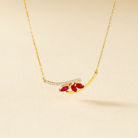 Collier Petale Or Bicolore Rubis Et Diamant - 43 cm
