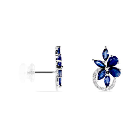 Boucles D'oreilles Puces Bouquet Or Blanc Saphir Et Diamant