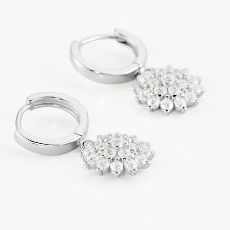 Boucles D'oreilles Puces Argent Blanc Clover Verre Oxydes De Zirconium - Boucles d'oreilles fantaisie Femme | Histoire d’Or