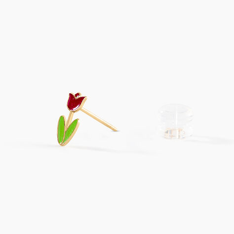Boucles D'oreilles Puces Fleur Email Or Jaune
