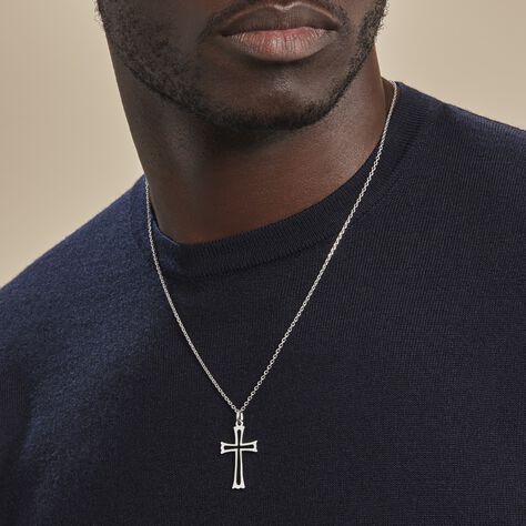 Pendentif Bathilde Croix Striee Or Blanc - Pendentifs Baptême Unisex | Histoire d’Or