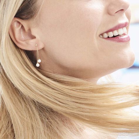 Boucles D'oreilles Pendantes Carrine 2 Fils Or Jaune Perle De Culture - Boucles d'oreilles pendantes Femme | Histoire d’Or