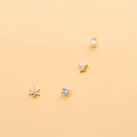 Boucles D'oreilles Puces Grizel Or Jaune Perle De Culture Et Oxyde - Clous d'oreilles Femme | Histoire d’Or