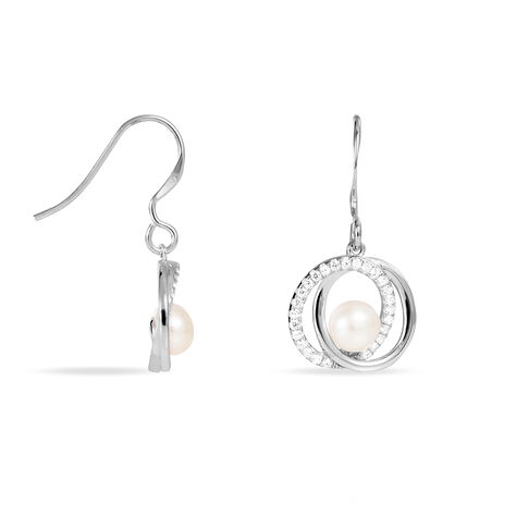 Boucles D'oreilles Pendantes Laury Argent Perle De Culture Et Oxyde