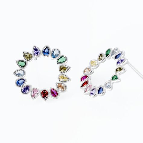 Créoles Jerusha Argent Blanc Spinelle Oxyde De Zirconium - Boucles d'oreilles créoles Femme | Histoire d’Or