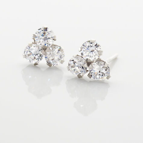 Boucles D'oreilles Puces Cathy Fleur Or Jaune Oxyde De Zirconium - Clous d'oreilles Famille | Histoire d’Or