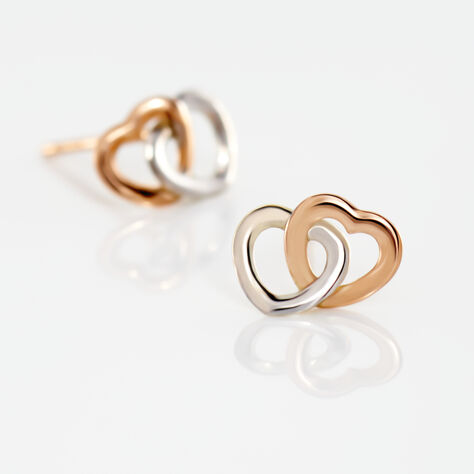 Boucles D'oreilles Puces Donna Coeurs Ajoures Or Rose