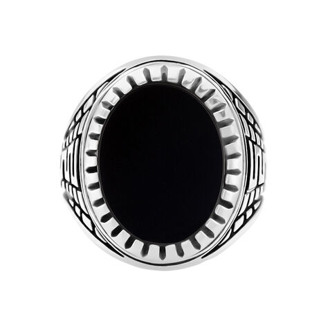 Bague Argent Blanc Thimeo Agathe Noire - Bagues solitaires Homme | Histoire d’Or