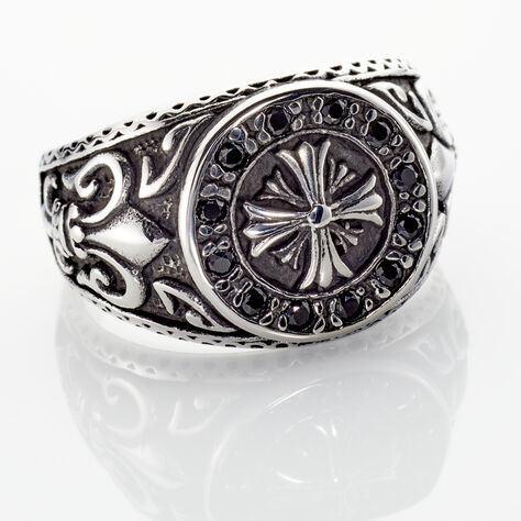 Bague Achille Acier Blanc Oxyde Noir - Bagues avec pierre Homme | Histoire d’Or