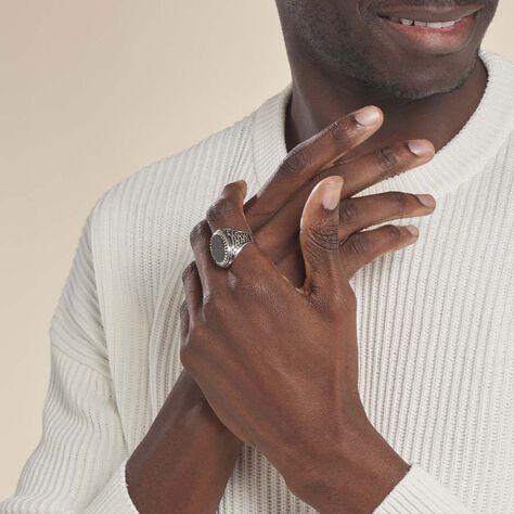 Bague Argent Blanc Thimeo Agathe Noire - Bagues solitaires Homme | Histoire d’Or