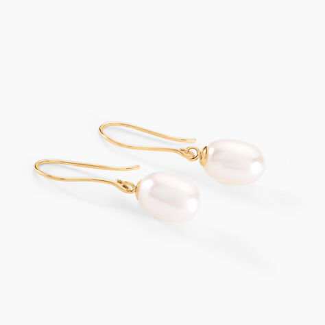 Boucles D'oreilles Pendantes Baroque Or Jaune Perle De Culture