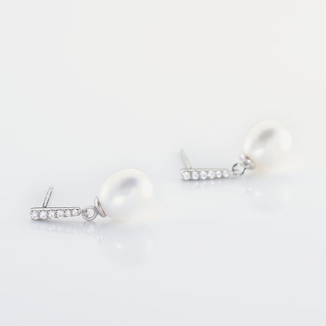 Boucles D'oreilles Pendantes Coria Argent  Perle De Culture Et Oxyde - Boucles d'oreilles fantaisie Femme | Histoire d’Or