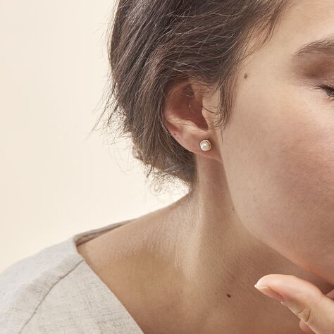 Boucles D'oreilles Puces Valliamee Diamante Or Jaune Perle De Culture - Clous d'oreilles Femme | Histoire d’Or