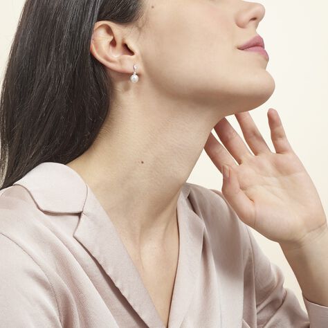Boucles D'oreilles Pendantes Melya Argent  Perle De Culture Et Oxyde - Boucles d'oreilles fantaisie Femme | Histoire d’Or