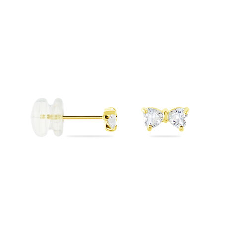 Boucles D'oreilles Puces Darina Noeud Or Jaune Oxyde De Zirconium - Clous d'oreilles Femme | Histoire d’Or