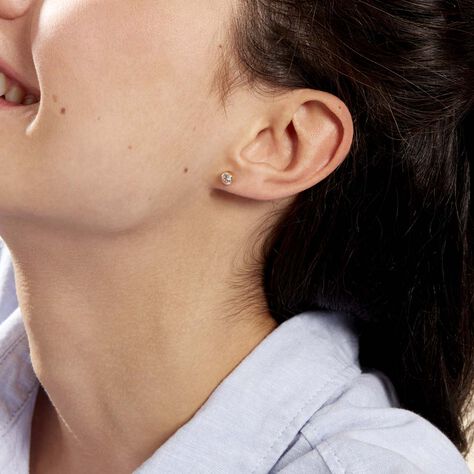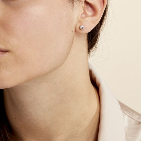 Boucles D'oreilles Puces Clothilde Or Blanc Oxyde De Zirconium - Clous d'oreilles Femme | Histoire d’Or