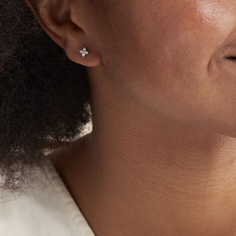 Boucles D'oreilles Puces Winter Flower Or Blanc Oxyde De Zirconium - Clous d'oreilles Femme | Histoire d’Or