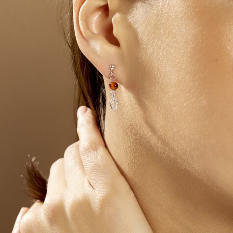Boucles D'oreilles Pendantes Argent Blanc Abellia Ambre