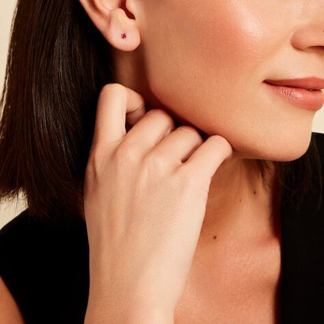 Boucles D'oreilles Puces Or Rose Clothilde Rhodolite - Clous d'oreilles Femme | Histoire d’Or