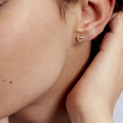Boucles D'oreilles Puces Coeur Ajoure Or Jaune Oxyde De Zirconium - Clous d'oreilles Femme | Histoire d’Or