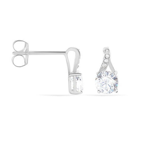 Boucles D'oreilles Puces Esperanza Argent Blanc Oxyde De Zirconium