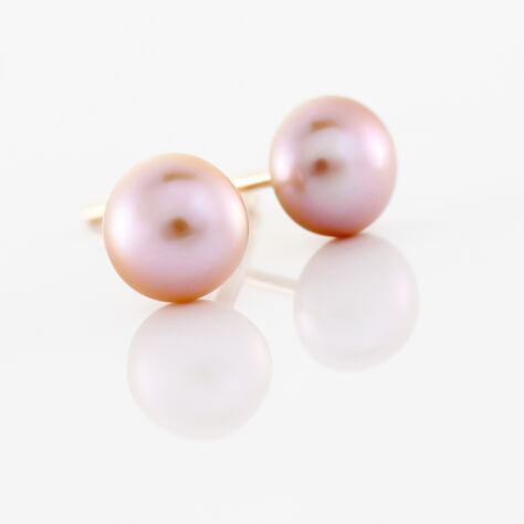 Boucles D'oreilles Pendantes Rose Or Jaune Perle De Culture