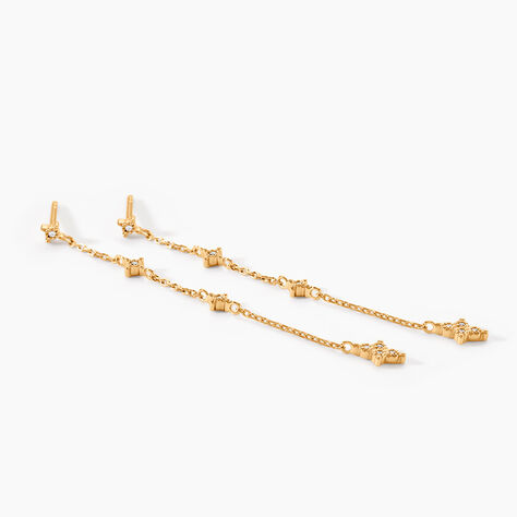 Boucles D'oreilles Puces Or Jaune Cercis Strass