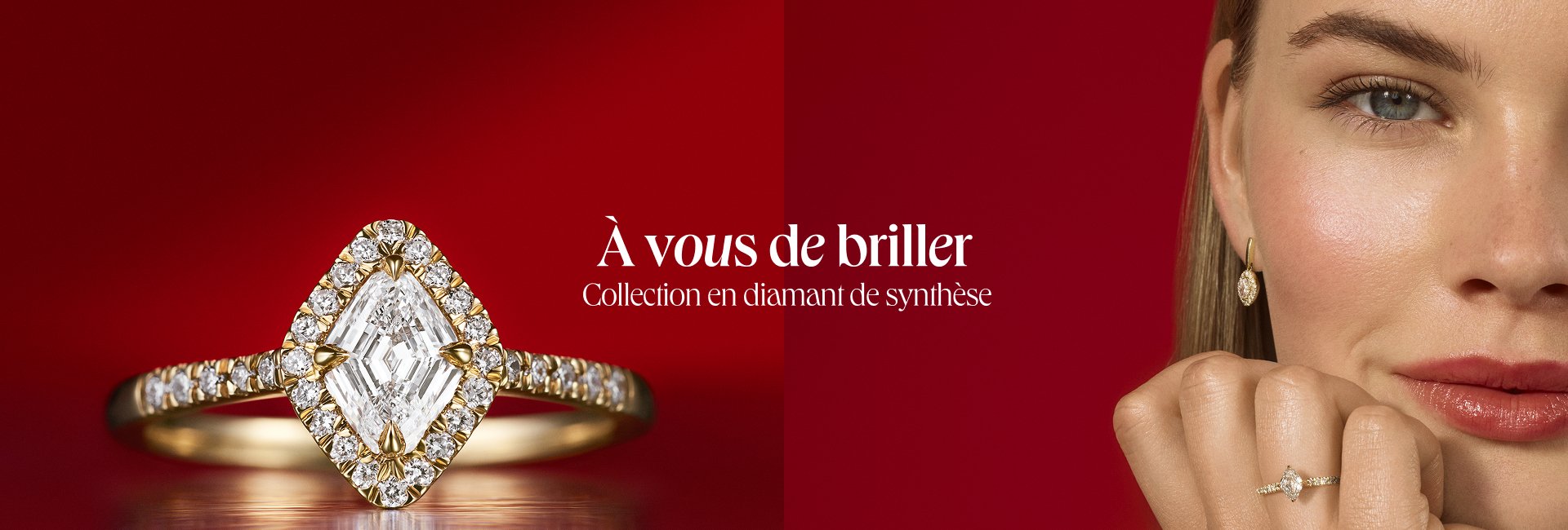 Entourés d’un pavage étincelant ou magnifiés sur une monture minimaliste, ces diamants de synthèse/synthétiques prennent vie sur des solitaires, des boucles d'oreilles et des pendentifs précieux