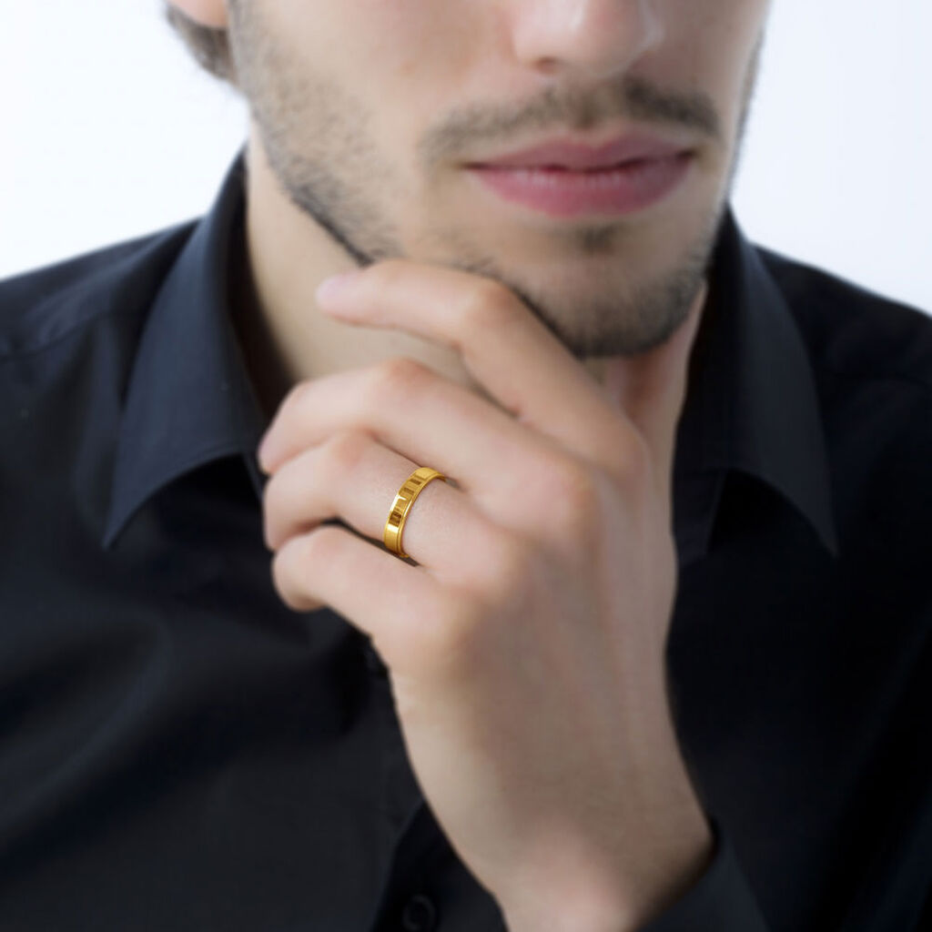 Placez votre bague sur l’écran et faites défiler les tailles jusqu’à atteindre les bords intérieurs de votre bague.