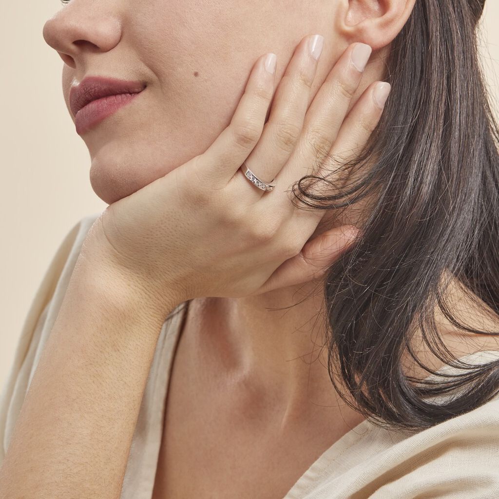 Anneau Argent Blanc 925/1000 Demi Tour Oxydes De Zirconium Serti Rails