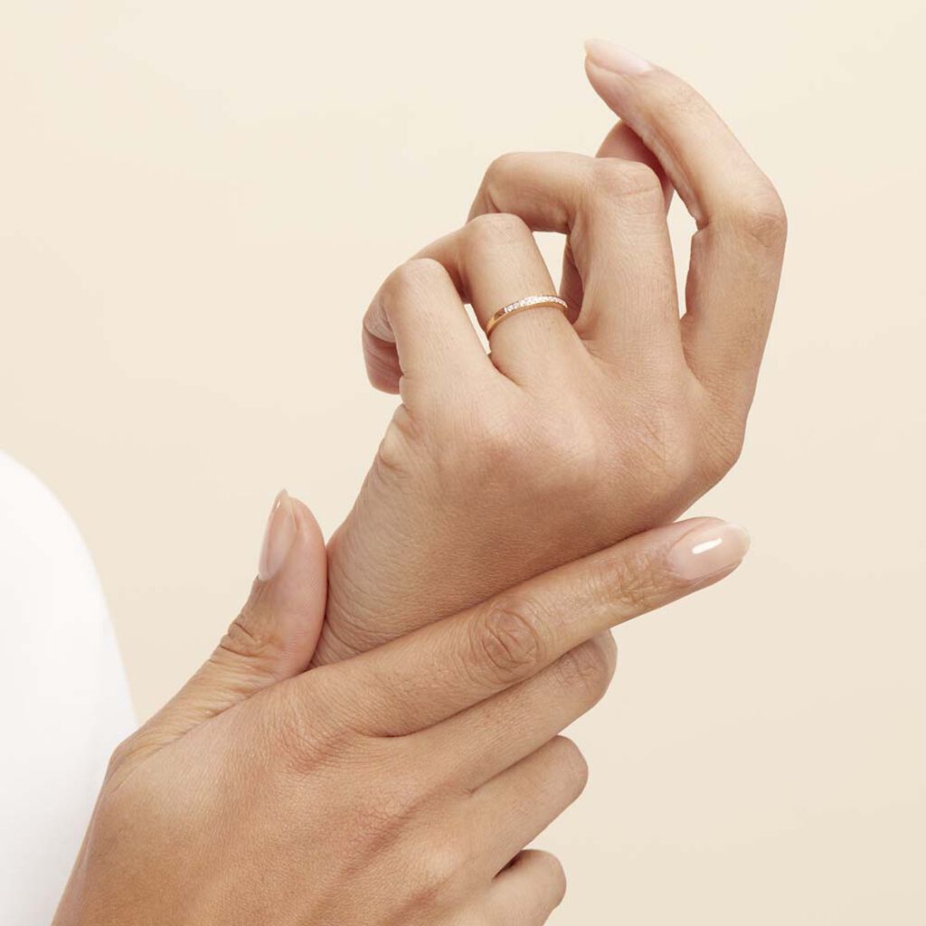Placez votre bague sur l’écran et faites défiler les tailles jusqu’à atteindre les bords intérieurs de votre bague.