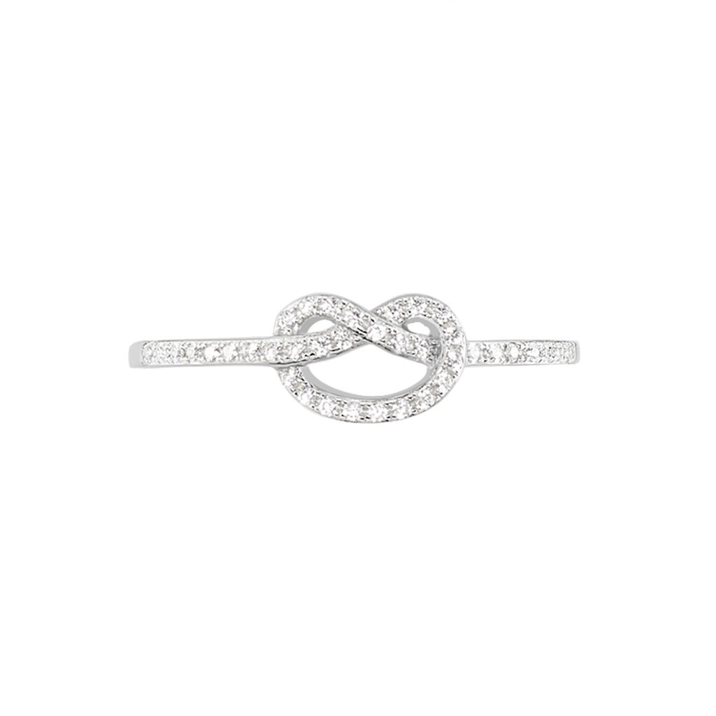 Bague Or Blanc 375/1000 Motif Nœud Pavage Oxydes De Zirconium