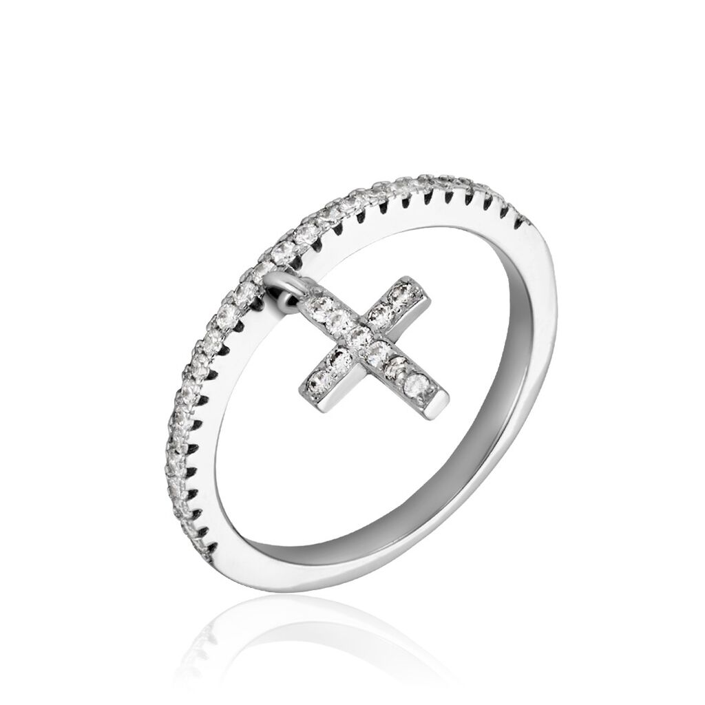 Bague Argent 925/1000 Pampille Croix Pavage Oxydes De Zirconium