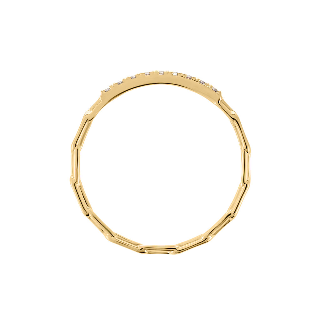 Bague Plaqué Or Jaune Barrette Pavage Oxydes De Zirconium Anneau Maillons