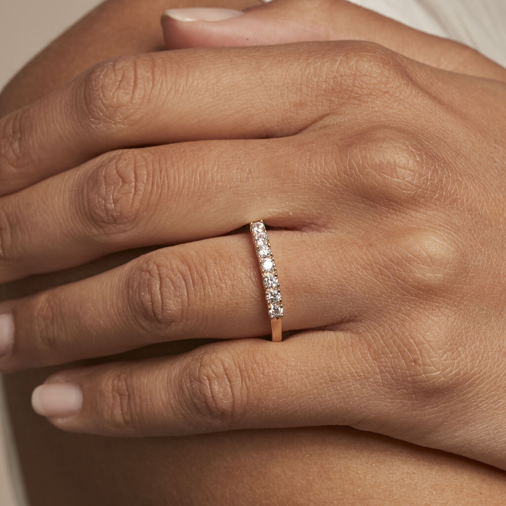 Placez votre bague sur l’écran et faites défiler les tailles jusqu’à atteindre les bords intérieurs de votre bague.
