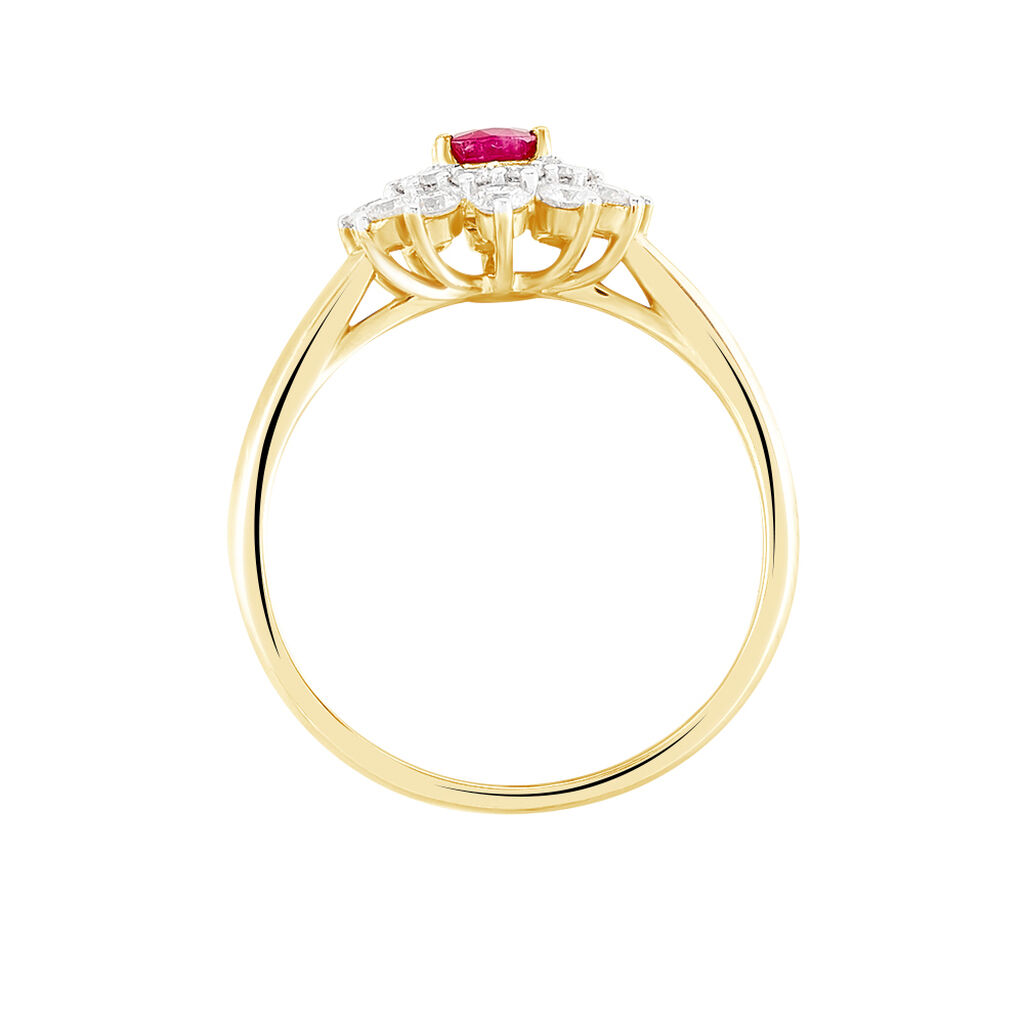 Bague Or Jaune 375/1000 Rubis Double Entourage Diamants Pm