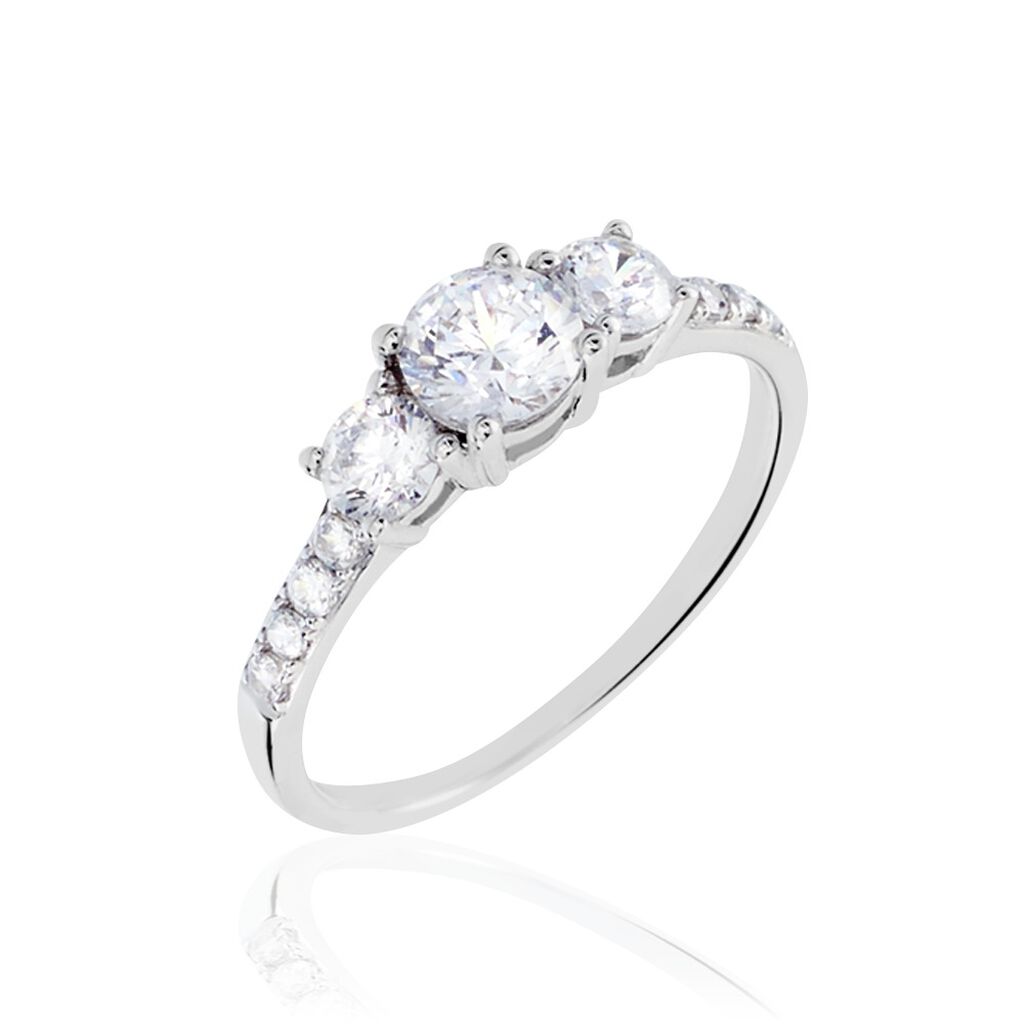 Bague Or Blanc 375/1000 Trilogie Accompagnee Oxydes De Zirconium