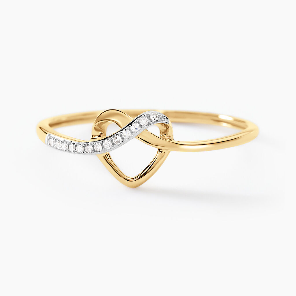 Bague Or Jaune 375/1000 Forme Coeur Pavage Diamants