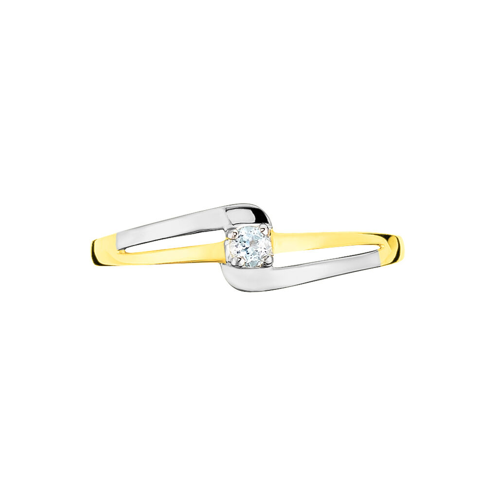 Bague Or Bicolore 375/1000 Rond Topaze Bleue