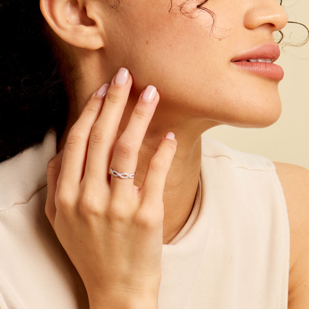 Bague Or Blanc 375/1000 Vague Oxyde De Zirconium Serti Pavage 0.32cts