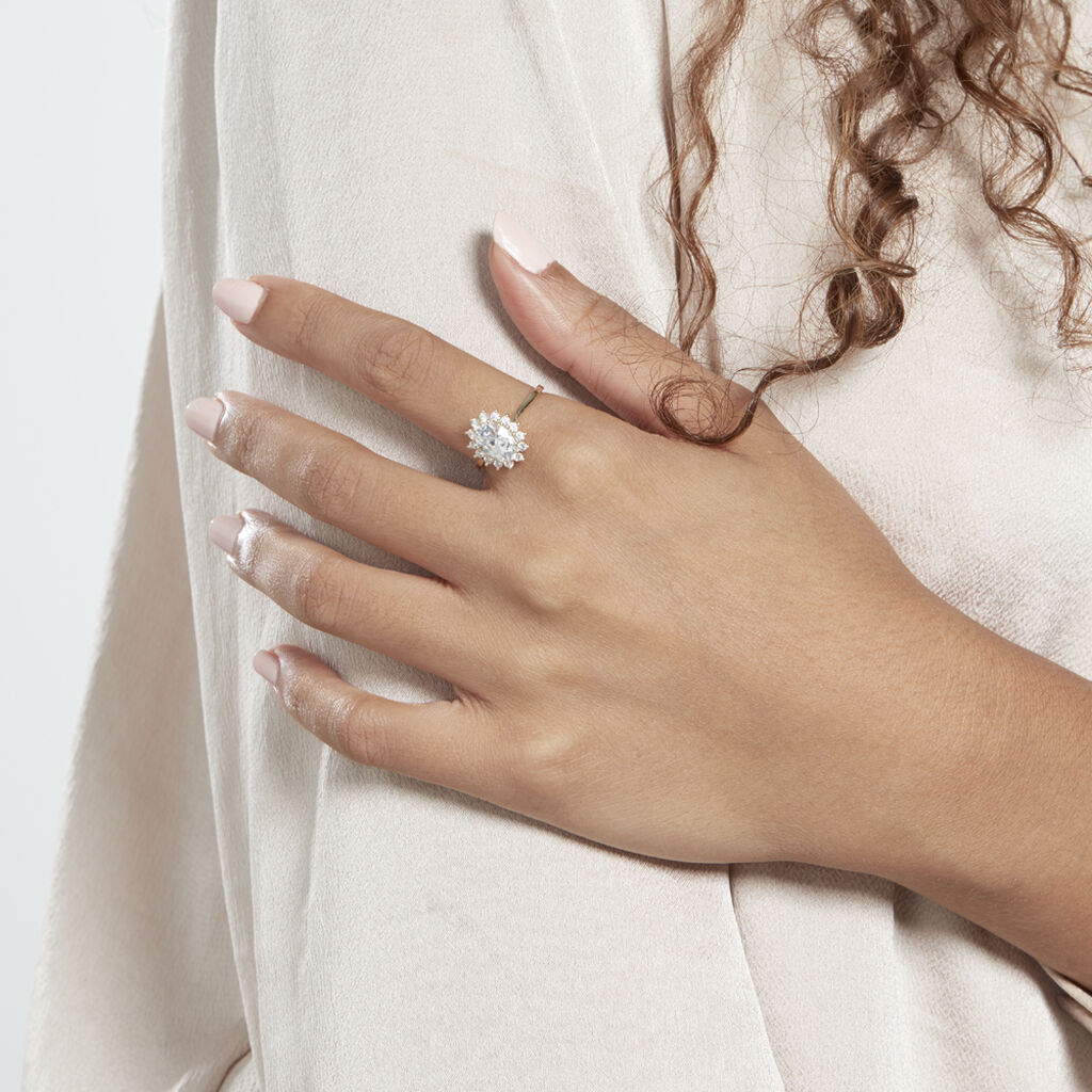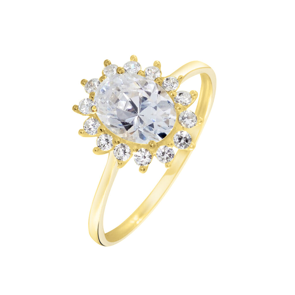 Bague Or Jaune 375/1000 Oxyde De Zirconium Ovale Entourage Marguerite Oxydes De Zirconium