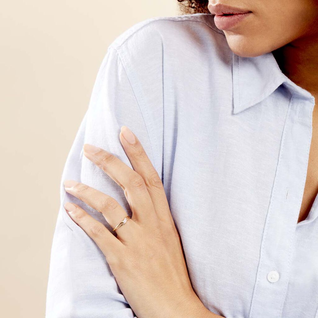 Placez votre bague sur l’écran et faites défiler les tailles jusqu’à atteindre les bords intérieurs de votre bague.