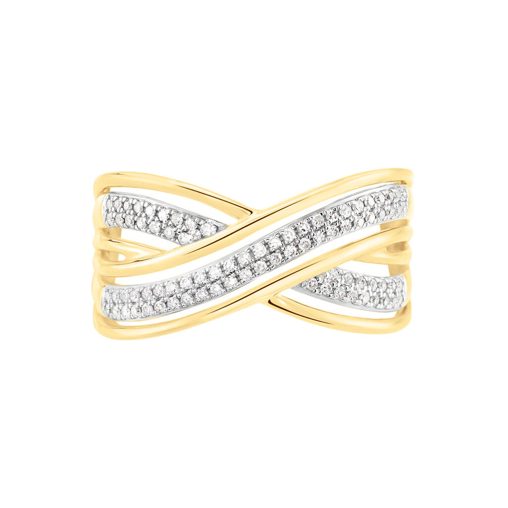 Bague Or Jaune 375/1000 Forme Croisee Pavage Diamants