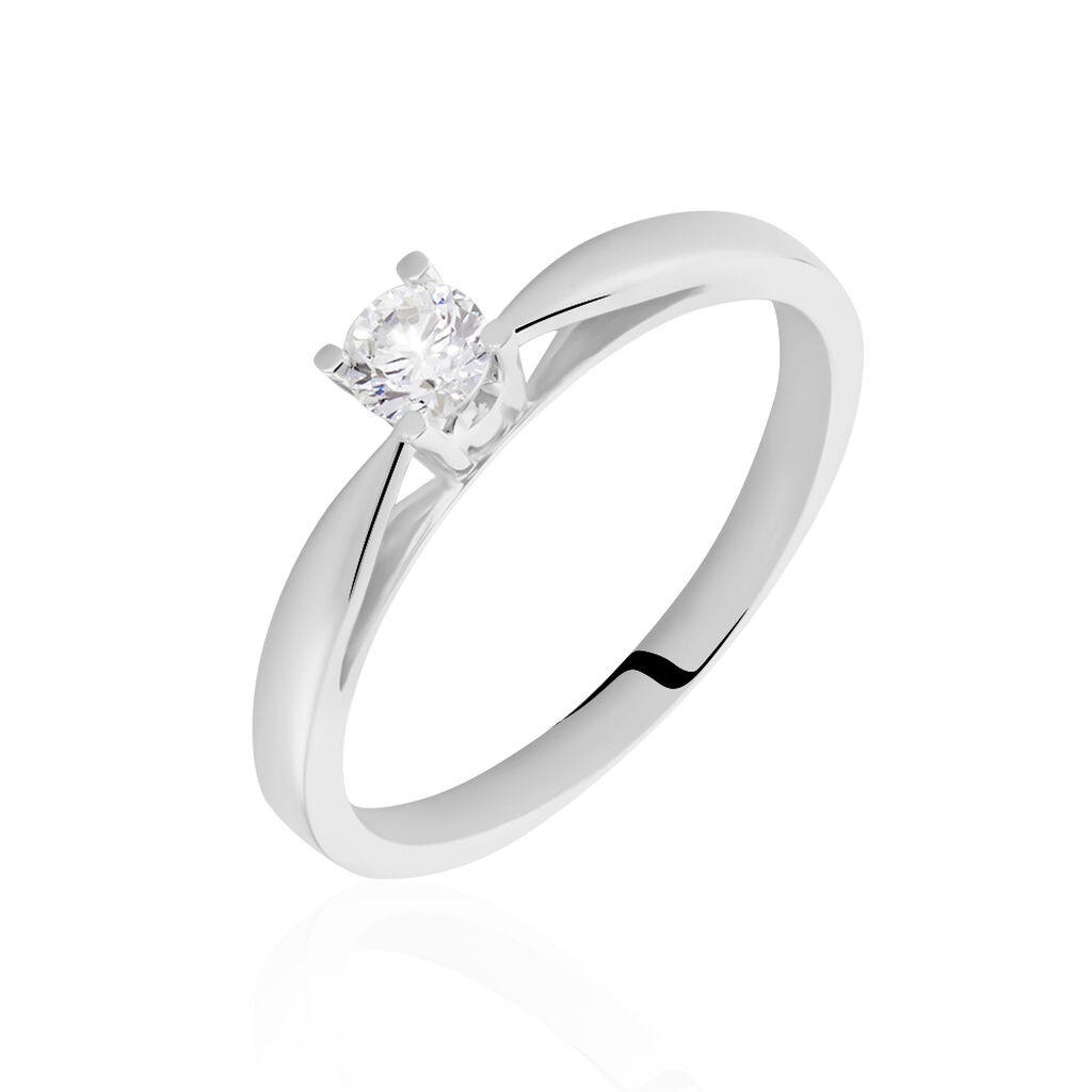 Solitaire Or Blanc 375/1000 Diamant 0.20ct Serti 4 Griffes