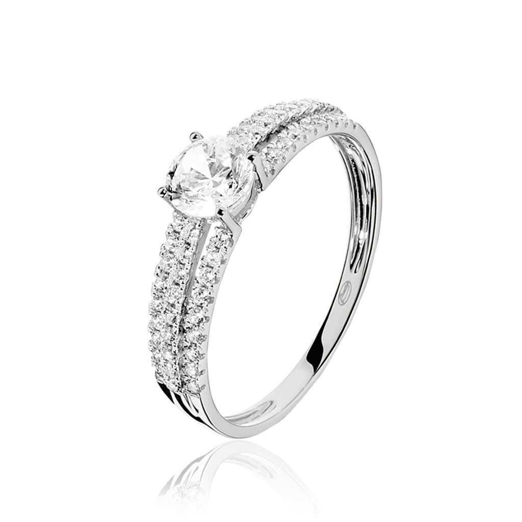 Bague Solitaire Ceridwen 3 Rangs Or Blanc Oxyde De Zirconium