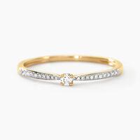 Solitaire Or Jaune 375/1000 Diamant Central 0.25cts Serti Griffes Accompagnes Diamants