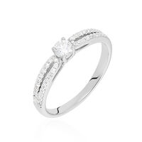 Solitaire Or Jaune 375/1000 Diamant Central 0.40cts Corps De Bague Double Accompagne Diamants